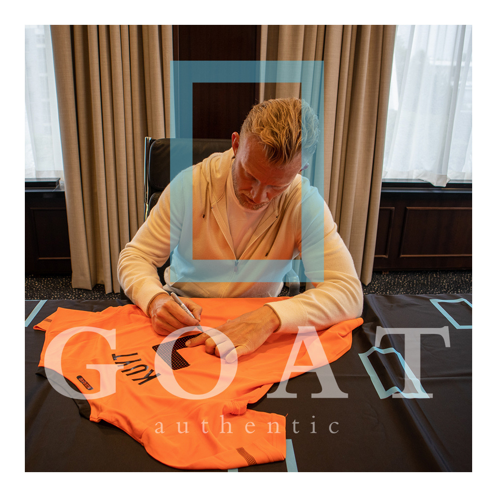 La maglia 2010 Olanda gara home è firmata personalmente da Dirk Kuyt.